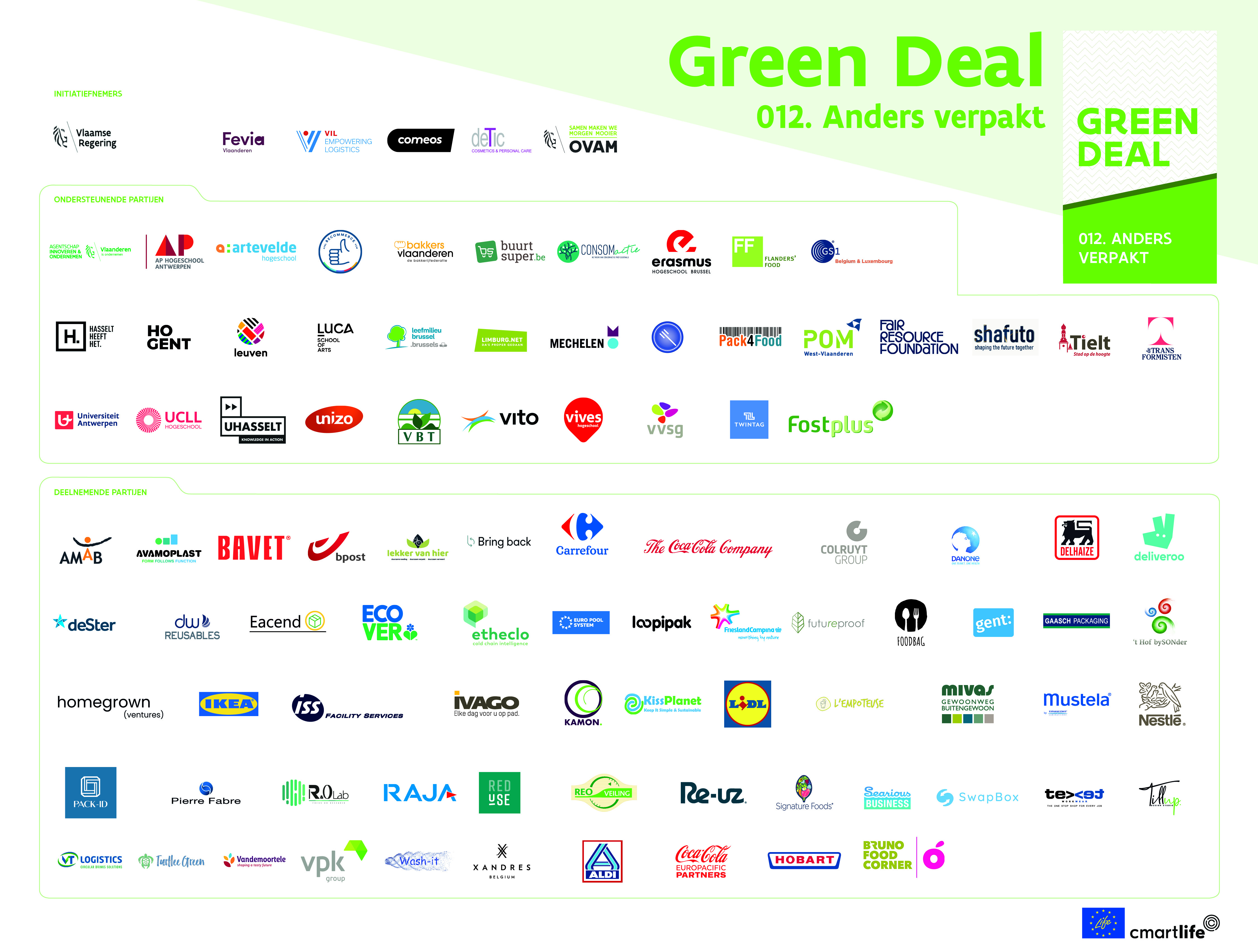 Meer dan 90 ondertekenaars engageerden zich tot de doelstellingen van de Green Deal Anders Verpakt. Ontdek ze hieronder!